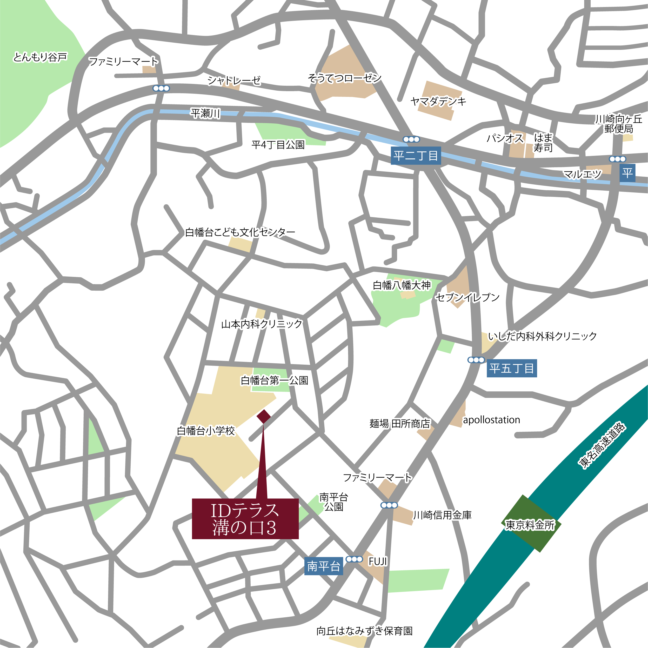 | 交通 | 東急田園都市線「宮前平」駅 バス14分 「東名向丘入口」バス停 徒歩5分・東急田園都市線「溝の口」駅 バス17分 「東名向丘入口」バス停 徒歩5分 |