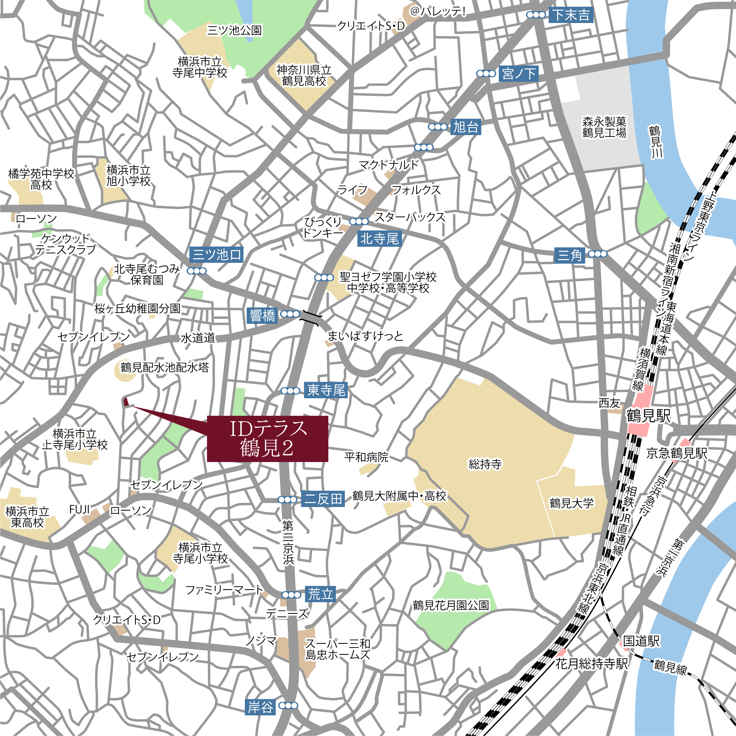 | 交通 | 京浜東北線「鶴見」駅 バス12分 バス停「貯水池前」停歩4分 |